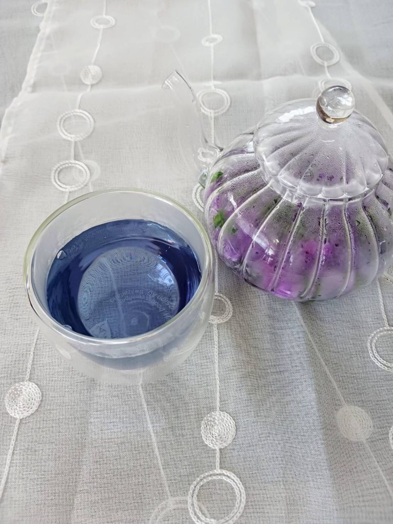 🌺鮮やかで綺麗なブルーが、酸性のレモンを入れると